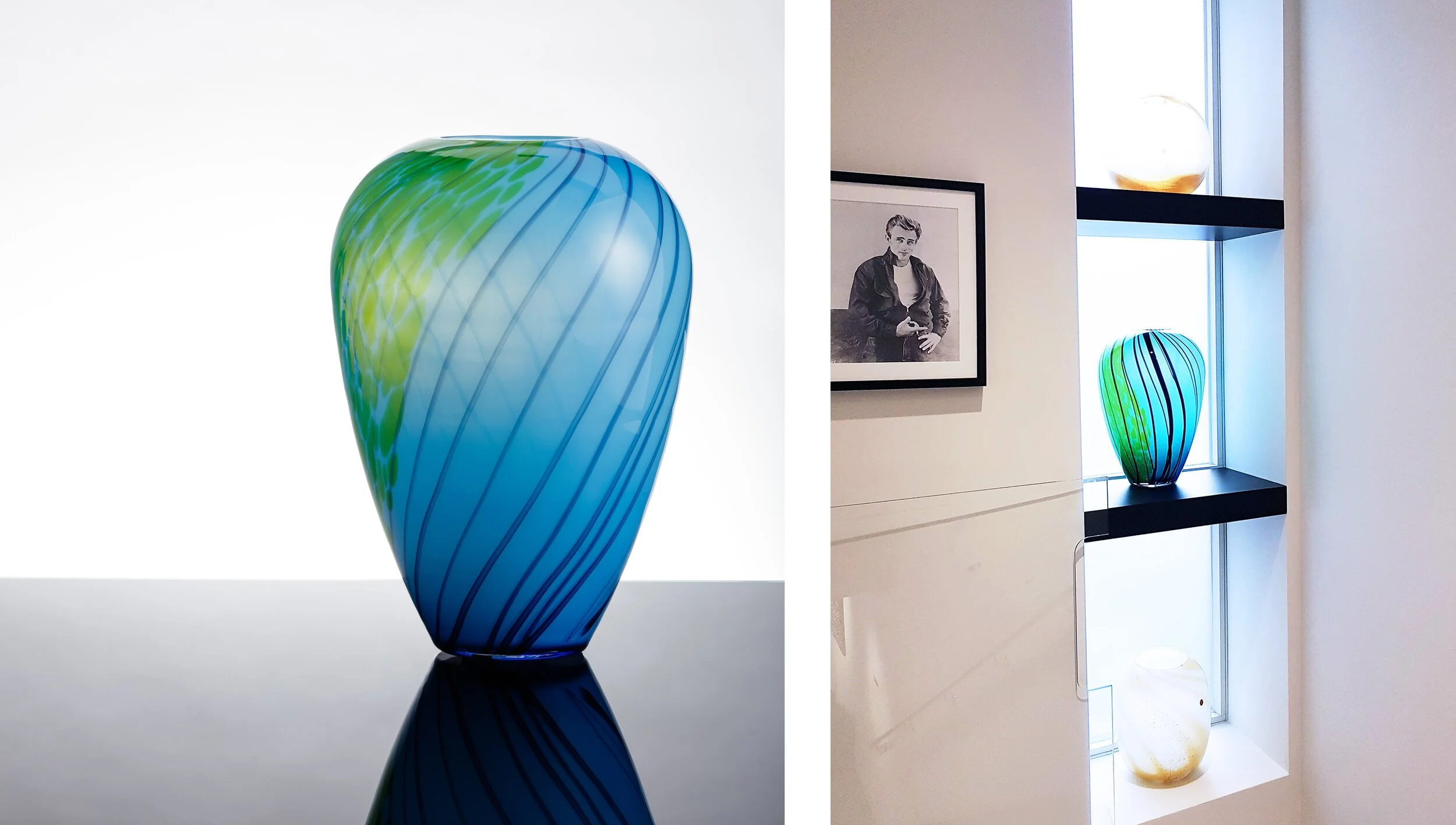 Amel Chamandy worked in collaboration with Wave Murano Glass to produce the bespoke La Farfalla mouth-blown vase Collection. Together, they crafted those unique and exclusive glass masterpieces in Murano. They shaped this glass collection according to the unique esthetic and conceptual expectations of the Amel Chamandy® Designs Brand.